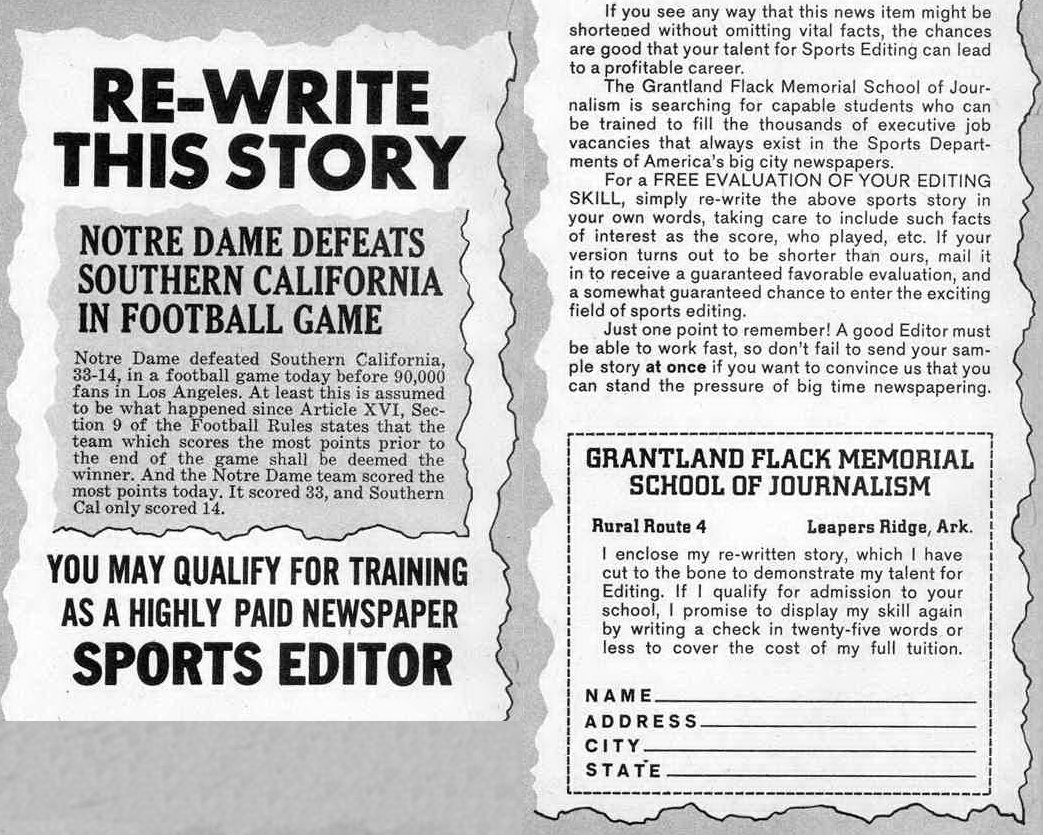 Ads for Alfred E. Neuman portraits, Paperbacks, Subscriptions (armored car hold-up with toy gun - written by Don (Duck) Edwing / Paul Coker, Jr. art)