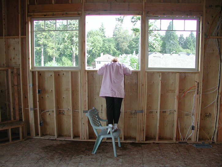 Saturday, December 3, 2005 Matt and Stan placed lower cabinets in the bonus bar, ![]() downstairs bathroom and laundry room while Joy and I hovered over them, amazed that they were actually there, not wanting them to leave our sights in case their actual presence was a figment of our over-active imaginations. In advance of Millennium Stone coming Tuesday to measure these cabinets for the setting of the last of the slab material, Matt spent today placing cabinets and will return Monday to apply plywood tops and cut for the various undermount sinks. ![]() He has us expecting him to be done around mid-month with Steve following on his heels to finish the great-room wainscoting, Marcel returning to give the hardwood a sanding and a protective coat, and then Gary and crew spending a number of weeks to do the wood staining. We may be ![]() over the hump finally this month. If you've been following this project you may recall around May 19th we reported someone had gone to a lot of trouble to steal the middle of three installed windows on the south side of the great room. We discovered the missing window today![]() fifty feet down the hill in the vines leaning against some shrubs, unbroken except for around the perimeter of the outside frame where nails had pulled through the hard plastic edges. The mystery is why someone would put so much effort into removing it and then leave it behind like that.