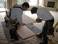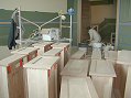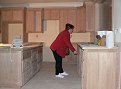 Friday, December 16, 2005 ![]() ![]() Manuel and crew focused on everything upstairs and in the upper stairwell this week, masking, sanding, conditioning the wood and staining it a warm, dark shade just light enough to still show off the grain. ![]() Matt and Stan somehow worked their way in between the paper and cans of stain to get the uppers in the laundry and master bath placed just before Manuel made those part of his work. Matt also placed the![]() cherry tub front with access doors to be able to get to the spa hardware. Joy and I showed up Friday night to check out Manuel's stain work and came upon the end-of-the-week tradition of workers kicking back with a few beers. Matt and Stan were leaving after just delivering the kitchen upper cabinets. He's staying ahead of Manuel who'll be moving to the main level next week.