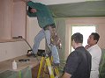 Saturday, December 10, 2005 ![]() ![]() ![]() Steve returned to work on wainscotting for the living room. Joy smoothed out the wall texture in the hallway leading from the master bedroom to the master bath so that wallpaper wouldn't show the bumps. Matt delivered but hadn't hung some upper cabinets in the basement. He should be bringing more the beginning of the week, dodging Gary's stainers who'll be masking things off.