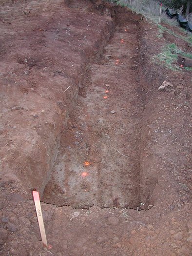 Sunday, January 30, 2005 ![]() Pete, our foundation man, marked the location of eight spots below what will be the east foundation walls to prepare for Monday's starting of Earth Anchors work. Debate has been ongoing about the extent to which we needed to secure this home on a steep hillside. John, the soils engineer, strongly recommended the process we're using, and though we know it may be overkill, it's a nice insurance policy against free rides down the slope. If you like this kind of stuff you can see more technical information at the Earth Anchors website.