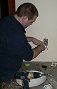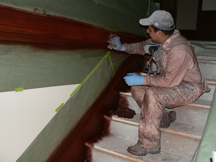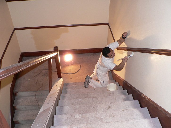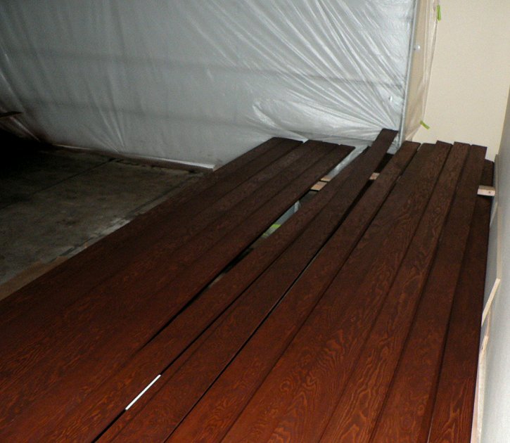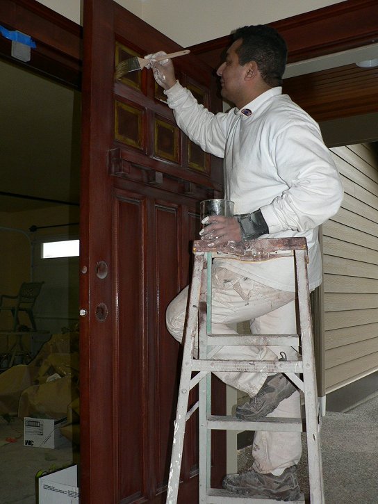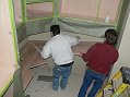 Friday, January 13, 2006 ![]() This is a monumental thing to be able to announce: Matt is officially done with the major cabinet work and Manuel has stained every piece of wood in the house except for the garage. Over the last few days, Manuel and crew worked down the ![]() stairs and into the basement bonus room. They still have to go through the sanding and varnishing process next week to bring out that Manuel glow that he's famous for by now. They also turned the garage into a staining room where the wood wall base and other trim pieces are getting their treatment.