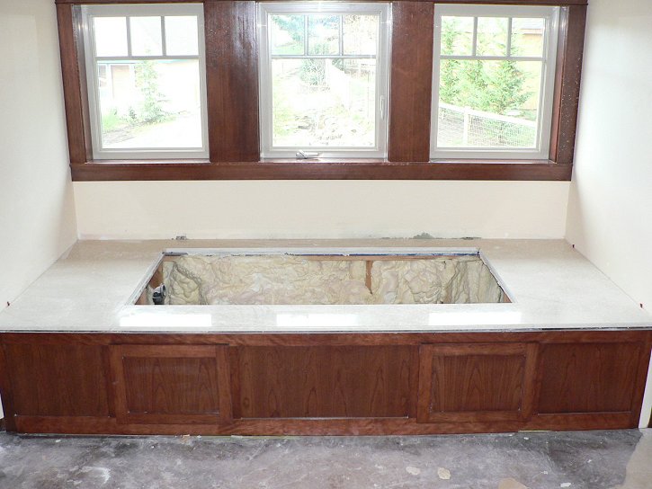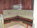 Wednesday, January 4, 2006 So begins the official online record keeping of our hillside adventure. Oh, wait a minute... That was from last January. ![]() ![]() Has it really been a year this month? Yeah, it kind of feels like it. Manuel varnished and sanded more woodwork on the main level giving it that glowing, polished quality of fine furniture. While Manuel filled the house with toxic fumes, I met with Matt in the basement to discuss a few details on the cabinets that![]() he and Stan are getting closer to completing. We planned the layout of the wood around the hearth to tie in with the rest of the cabinets, talked about how far to extend a frame around the TV, and detailed a small, open shelf unit that will attach below the uppers above the computer desk. He and Stan got cabinet doors placed including the ones in front of speakers which will have cloth stretched across each opening. ![]() When we came up in the evening I couldn't believe how much better the cabinets looked with doors. I hadn't been able to visualize the finished product very well up to that point. On Tuesday, Millennium Stone finished their work by installing left over marble slabs on the downstairs bar and bathroom counters.