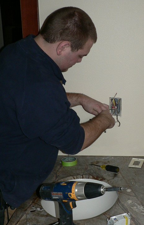 Thursday, January 26, 2006 Excavator, Shawn, took advantage of a rare clear day, ![]() ![]() Tuesday, after over thirty days of rain, to grade around the house. Back in November I had cleared two 100 foot paths down our hill side for him to lay perforated pipe connected to our east-side gutter system. This was the compromise we and the city came up with to get rid of the rain water without causing too much erosion. ![]() ![]() ![]() We're hoping we can come up with a natural way to obscure these black pipes. Also starting Tuesday and going the rest of the week, the electricians installed switches and plugs and can lights, keeping out of Manuel's way as he rolled the last of the final paint coats. Today when I visited, Manuel was putting the last coat of varnish on the front door. The electricians actually had some lights connected, able to be switched on and off, not that monumental of a thing, but a novelty nonetheless. To avoid a thick coating of dust, they opted not to set any can lights in the kitchen because Marcel is due for most of next week to sand the heck out of the hardwoods on the whole main level.