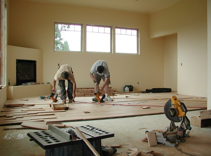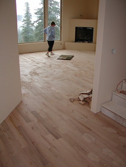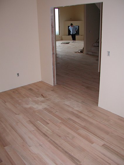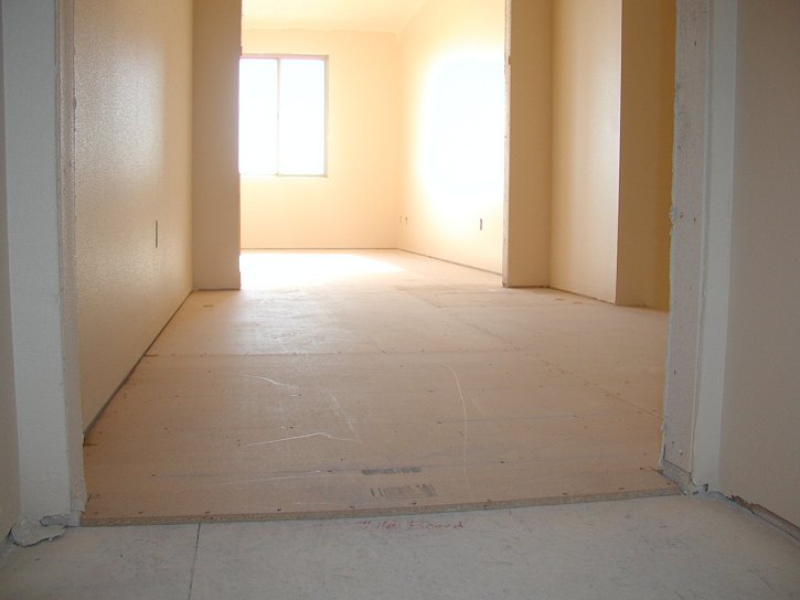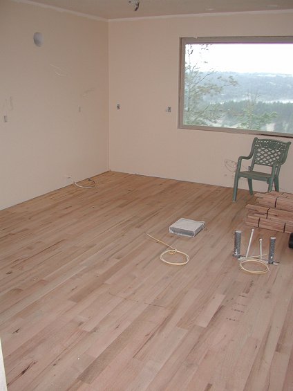 Friday, July 1, 2005 We finished June up with Gary completing all the interior wall and ceiling painting, Rick installing particle-board subfloor on the upper level floors and hard wood being delivered.