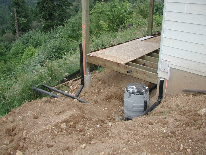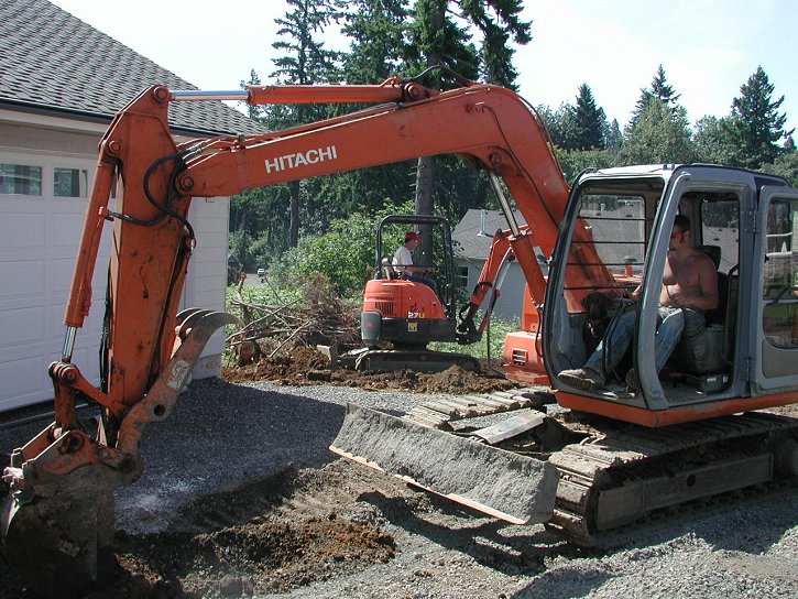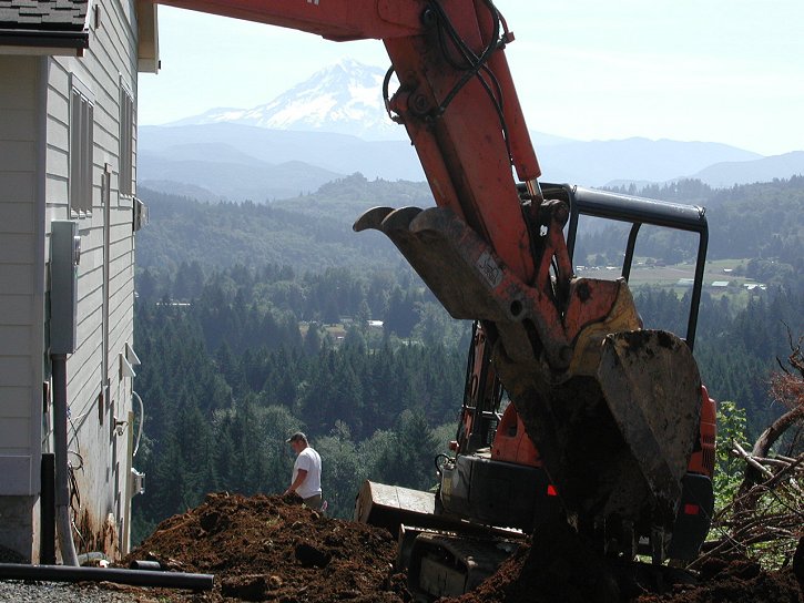 Monday, July 4, 2005 ![]() ![]() Today was the second anniversary of our discovery of the Hood Court property and to celebrate, Shawn played in the dirt in the morning hours. He and his guys dug trenches for the water, sewer, gas, electric, and cable lines for hook-up to the street. They also laid drainpipe on the north and south sides of the house for eventual rain gutter connections. To protect from concrete![]() ![]() ![]() splashes, Joy and I taped plastic to the walls inside the garage in advance of the floor possibly being poured soon. The mountain was out just like it was on that fateful day two years ago when we threw caution to the wind. Tuesday, July 5, 2005 Shawn returned to lay pipes and fill all the trenches back in. Now the different utility services will be on track to make their final connections to the house. It's a novelty being able to go in the front door without hopping a hole. Dan can do concrete in the front walkway and garage when he gets a break in his schedule. Marcel, the hardwood installer, is due to do a moisture test in the underlayment to make sure he can proceed. Tom installed the sump pump to the north of the lower deck. With that out of the way we can finally get the Trex on that deck since Tom had needed working access below and around it. Joy and I are feeling a little time crunch. Our bank loan completion date is for October 2nd (a little less than three months from now). There still seems so much to do. Our potentially biggest time delayer is the cabinetry. Matt is in high demand and speculates that he'll need a full month to get cabinets set. So many things depend on his schedule. Cabinets need to be stained. Trim work needs to be set around finished cabinets. Granite tops can only be measured with complete cabinet bases in place. Millennium Stone has a measuring scheduled for Monday, July 25th (yeah, right!) and informed us that they are so swamped that it would be September before they could come out to measure again. So the doubt sets in and the questions arise about what we could have done when things seemed to have been moving along quite well and maybe I'm borrowing trouble again, but we are calling the bank to find out if there's a grace period and if not, what will be the financial impact?
