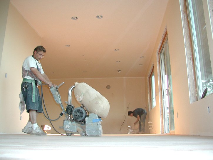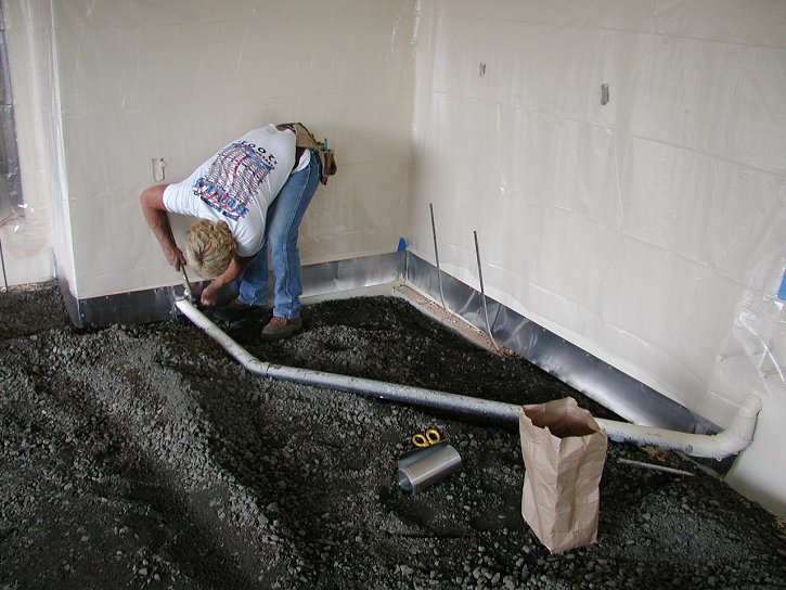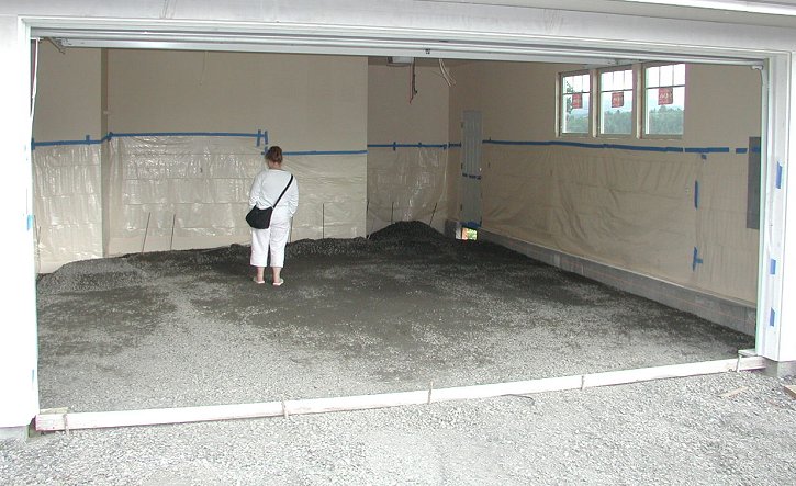 Wednesday, July 6, 2005 Stan, our loan man, said an additional 30-day extension would cost around $1200. We'd prefer not to have to come up with that money, of course, but we'd handle it if necessary. Millennium Stone took a little heat off by saying a measurement for granite top fabrication could take place in mid-August instead of September. Dan hauled in gravel and snapped chalk lines in the garage and will be continuing Thursday with preparation for a Monday pour. That leaves time for Marcel to lay our hardwood. He tested for moisture and pronounced the area ready to go for Thursday. I picked up some 15-pound felt paper at Home Depot at 9:30 this evening to go under the wood. We'll be rushing to get him 30 feet of stairnose trim for the top step and stairwell shelf connected to the main level.