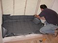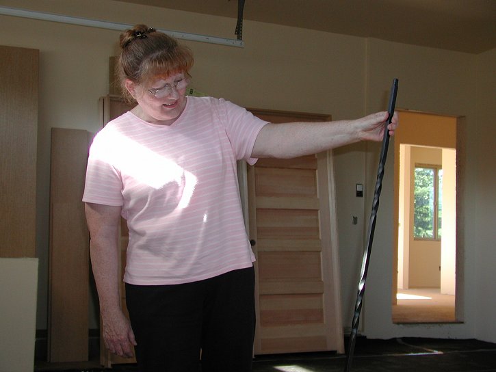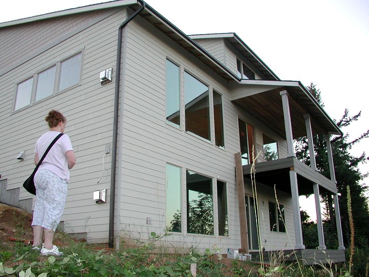 Wednesday, July 20, 2005 As commonly happens, a good portion of our wood package was wrong or incomplete. Steve, Joy and WestPac representative, Dean, met tonight to clarify and correct the order. Steve also hung around to take doors to their appropriate rooms. Tom brought tile backer-board to the house to get started on shower walls and tile floor areas over the next couple days. Our insulation inspection passed Tuesday. Tuesday was also the first of 33 radiation treatments for Joy to zap any remaining breast cancer cells hanging around. We've been told she may experience some fatigue but I think that will come with having to get up to get to the weekday appointments by 8 a.m.