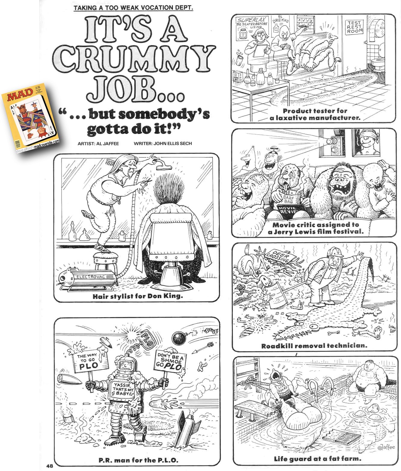 It's a Crummy Job... "But Somebody's Gotta Do It!"Taking a Too Weak Vocation Dept.Written by John Ellis Sech / Art by Al Jaffee