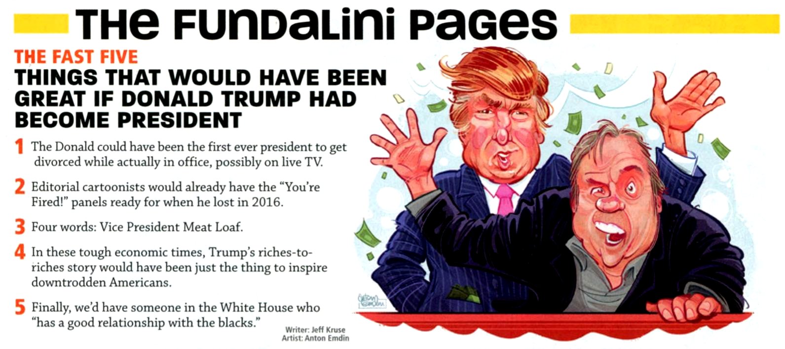 - The Fast Five — Things That Would Have Been Great If Donald Trump Had Become President — Written by Jeff Kruse / Art by Anton Emdin sample